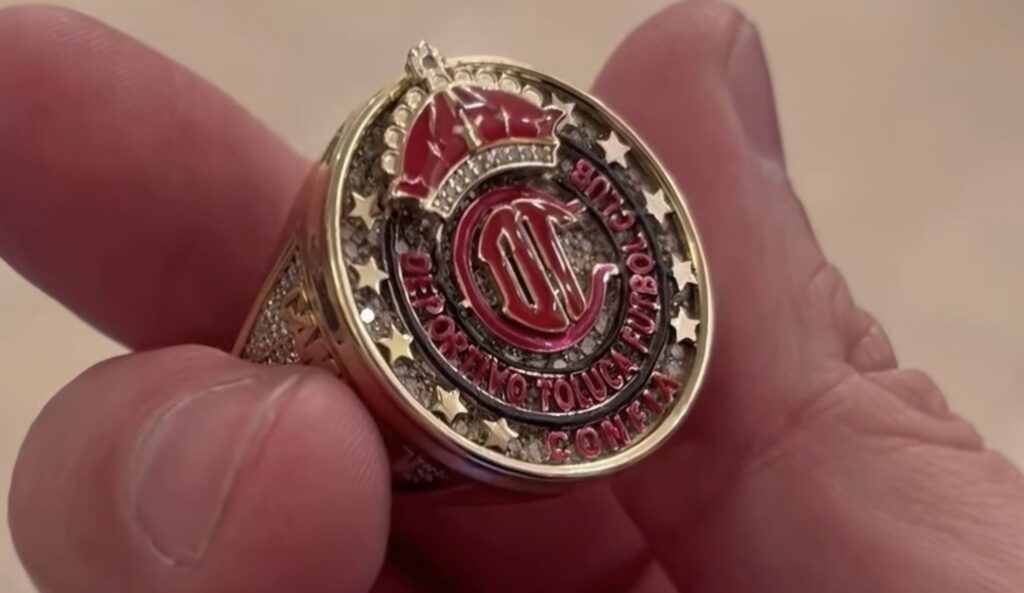 El anillo, con un diseño inspirado en los deportes estadounidenses, tiene un valor aproximado de 16 mil pesos, según distintos reportes. La pieza incluye el escudo de Toluca en el centro, rodeado de brillantes que le dan un toque lujoso y distintivo.