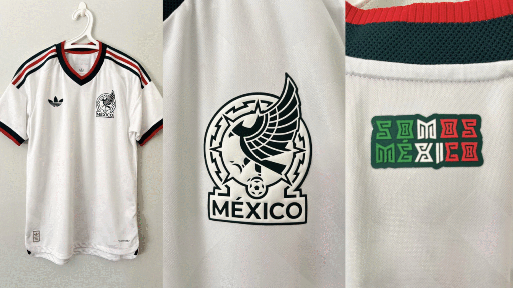 Según el sitio Footy Headlines, la camiseta será predominantemente blanca y contará con un patrón geométrico inspirado en símbolos mesoamericanos. El cuello en V y los puños presentan detalles en verde y rojo, mientras que el logotipo de Adidas aparece en su versión clásica del trébol. El uniforme se complementaría con shorts y calcetas en verde oscuro con acentos en rojo y blanco.