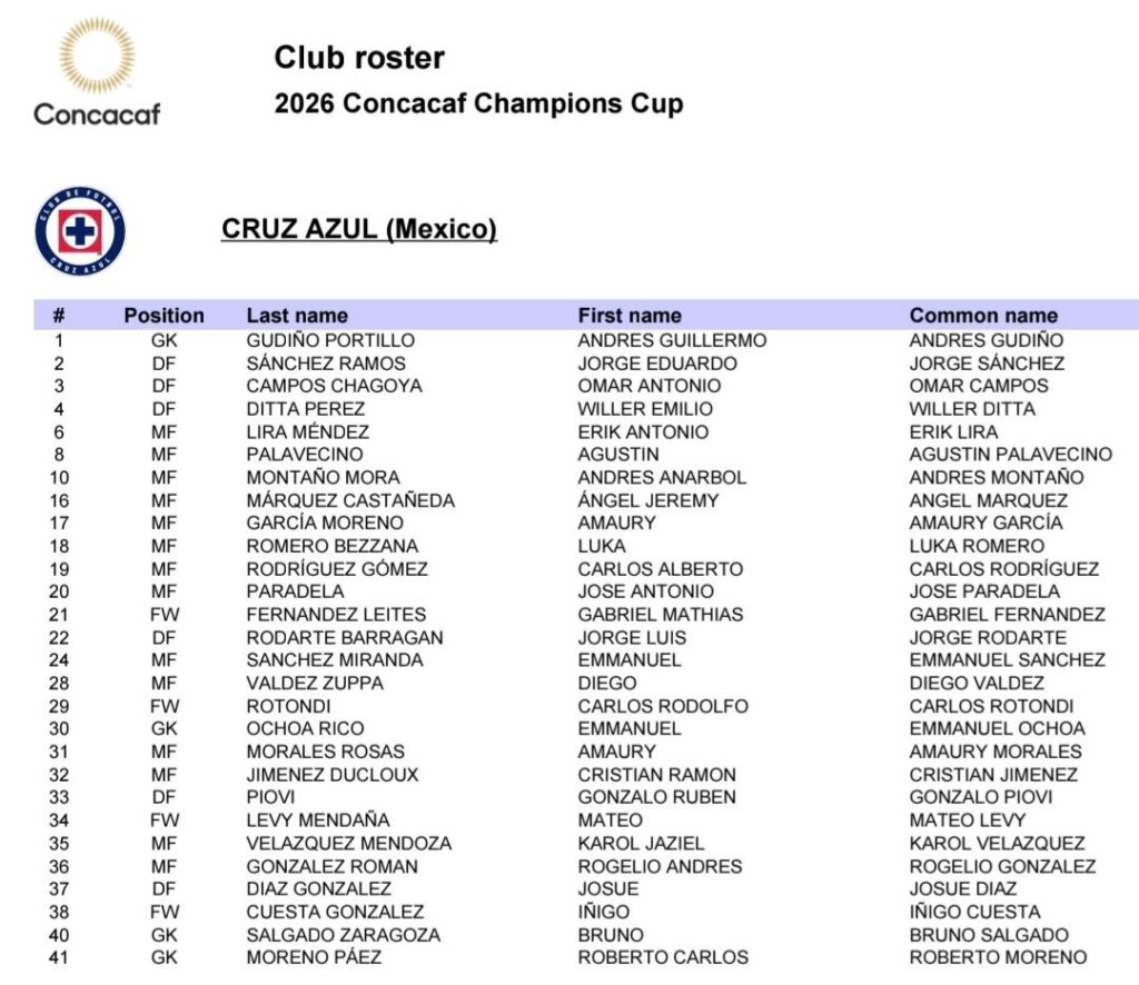 Con esta base definida, Cruz Azul se alista para iniciar la defensa de su título apostando por un plantel profundo y competitivo. El debut del conjunto celeste en la Concacaf Champions Cup 2026 será el próximo 4 de febrero, cuando visite al Vancouver, en un duelo que marcará el primer paso en la búsqueda del ansiado bicampeonato continental.