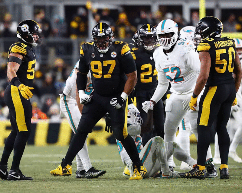 En el tercer cuarto llegó el quiebre definitivo. Rodgers conectó con Valdes-Scantling y más tarde lanzó un pase profundo de 28 yardas a DK Metcalf, ampliando la ventaja de Pittsburgh. La defensiva acerera presionó de forma constante a Tua Tagovailoa, provocando capturas consecutivas que frenaron cualquier intento de respuesta de Miami.