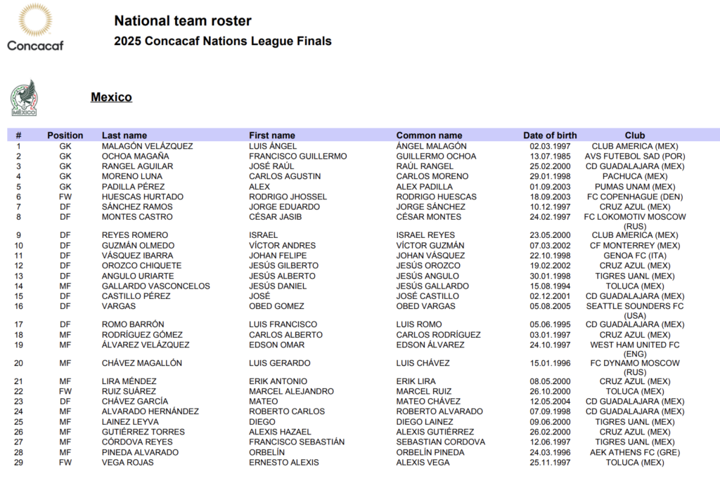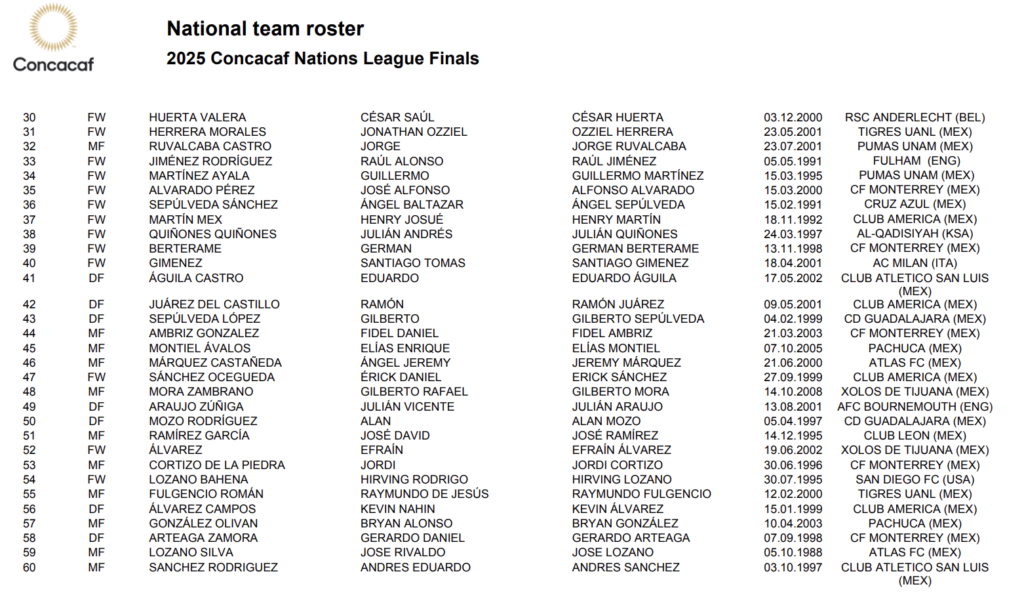 Esta lista de 60 jugadores se reducirá a 23 nombres, los cuales serán los que hagan el viaje a Estados Unidos para esta llave de semifinales. Destaca también la inclusión de Hirving ‘Chucky’ Lozano y de Julián Quiñones, quienes también militan en el extranjero.
