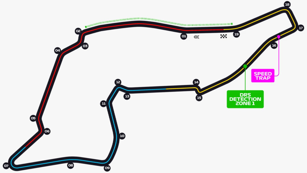 El Autódromo Enzo e Dino Ferrari tiene una longitud de 4.909 kilómetros y alberga una carrera de 63 vueltas, con 19 curvas, combina velocidad y técnica, especialmente en secciones como Acque Minerali, Rivazza y la icónica Tamburello, escenario de momentos históricos y trágicos para la F1.